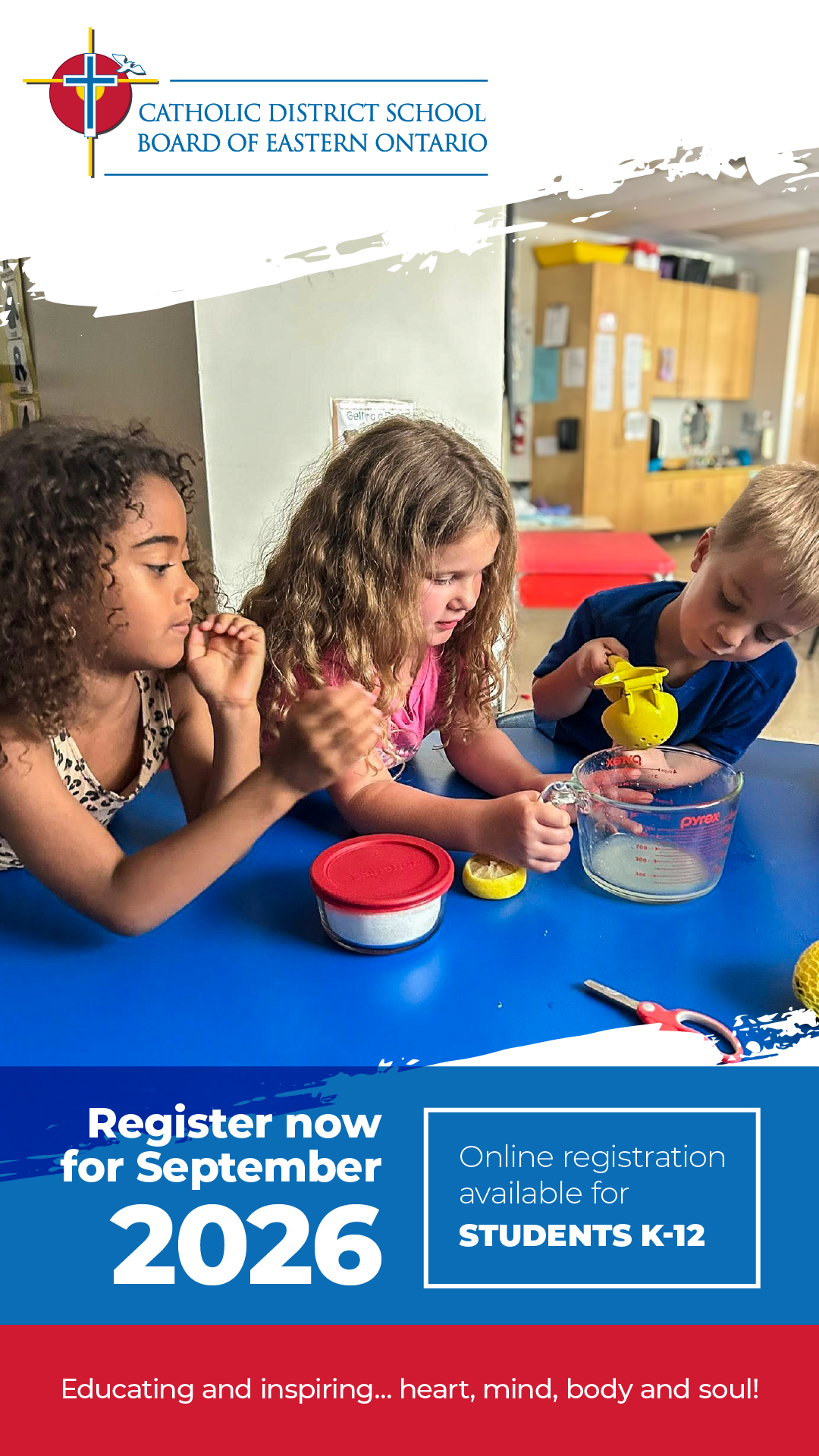 St. Peter Catholic School is now accepting new student registrations for September 2026! We invite parents/guardians to complete the online pre-registration by visiting http://bit.ly/CDSBEORegistration. All details on the registration process can be found on this page. We also invite families to join us for our upcoming Kindergarten open house which takes place on January 29th from 4-5 PM. We look forward to welcoming your child in September!